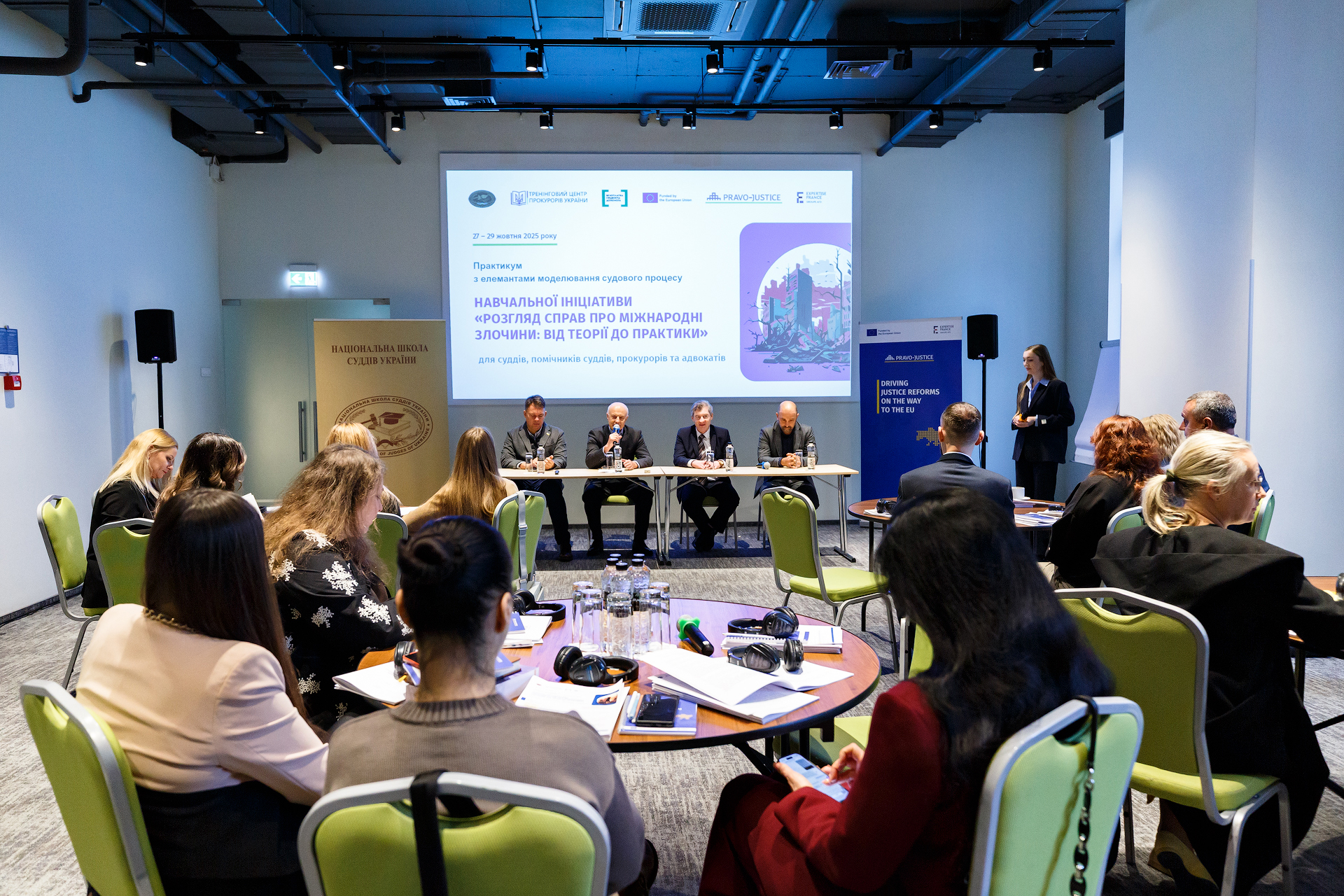 Практикум є одним з елементів навчальної ініціативи "Розгляд справ про міжнародні злочини: від теорії до практики", яку реалізує Проєкт ЄС "Право-Justice" за сприяння Національної школи суддів України, Тренінгового центру прокурорів України та Координаційного центру з надання правничої допомоги. Він спрямований на поглиблення знань від попередніх десяти онлайн-вебінарів, які були побудовані на розборі правових позицій 10 рішень міжнародних судів та трибуналів, а також елементах відповідних злочинів.